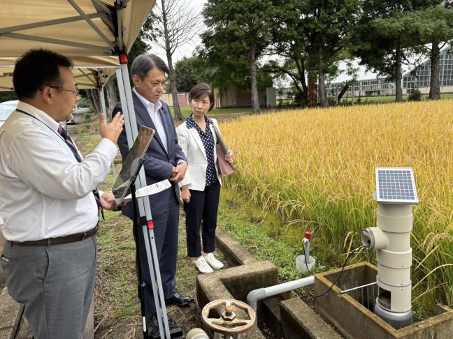 スマート農業技術活用促進法施行から1年。スマート農業実証プロジェクトの成果報告を伺った後、植物工場やロボットトラクター、水管理システム等の先端技術を見せていただきました。