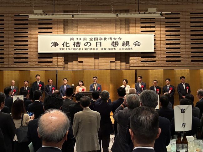 昭和62年に10月1日を「浄化槽の日」と定め、以来、官民一体となって浄化槽の健全な普及促進と啓発活動にご尽力いただいている関係者の皆様が集われての全国浄化槽大会懇親会に出席させて頂きました。