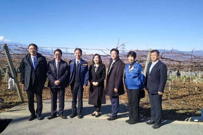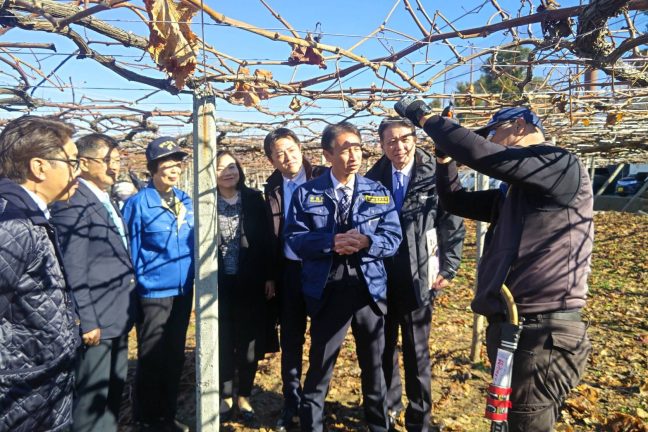 公明党農林水産業キャラバンで山梨県笛吹市へ 午前は山下政樹 笛吹市長とともに笛吹市農業塾主催の果樹整枝剪定講習会を視察し、市として新規就農者育成に取り組む姿を学ばせていただきました。