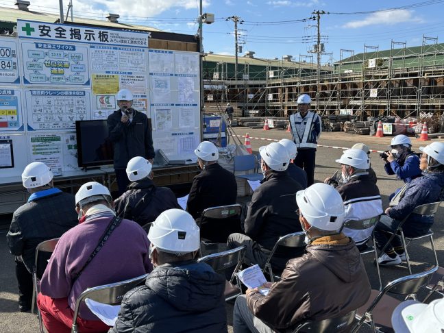 多くの方の協力により工事も順調に進む中、今後は住宅地近くや漁業活動の場における工事も控えている事から施工方法や工程の説明を受け現場を見学しました。