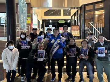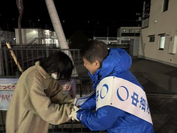 夜は都留文科大駅前で若者の皆さんと挨拶に立ちチラシ配りを行いました。